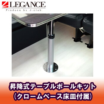【LEGANCE/レガンス】昇降式テーブルポールキット クロームべース床皿付属(※テーブルポールと床皿の2点セット) 汎用 200系ハイエース キャンピング 車中泊 ジェイクラブ 【J-CLUB】